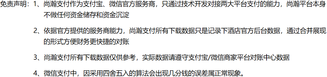 尚瀚支付是基于POS推出的一款可受年懂理微信、支付寶、銀行卡預授權交易的酒店收銀産品。顧客可使用微信朋街、支付寶、銀行卡預授權交易,在尚瀚支付上支付房費服都和押金,酒店可以統一管理收款方式,提升服務效率。